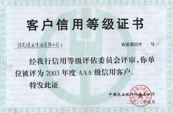 2003年3A信用證書(shū)
