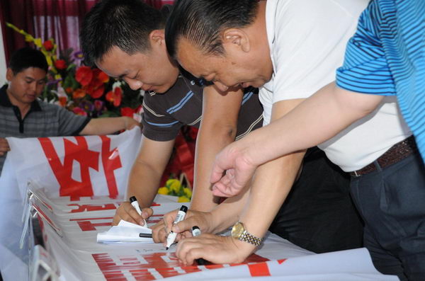 隨著全體與會人員在安全生產(chǎn)宣傳標(biāo)語上簽名,集團(tuán)公司安全生產(chǎn)百日賽暨安康杯競賽活動正式拉開了序幕。